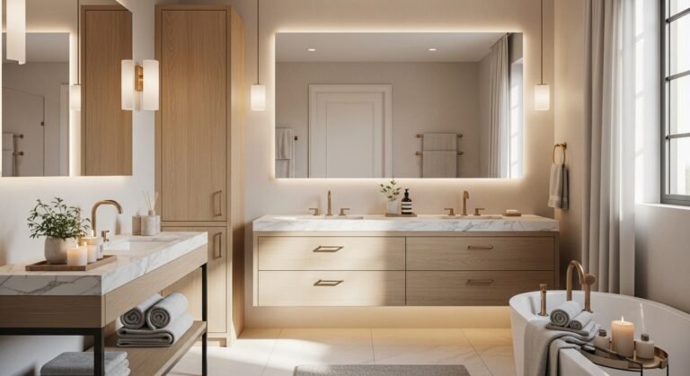 Create a spa-like retreat with durable, moisture-resistant custom bathroom cabinets and beautifully designed bathroom vanities.